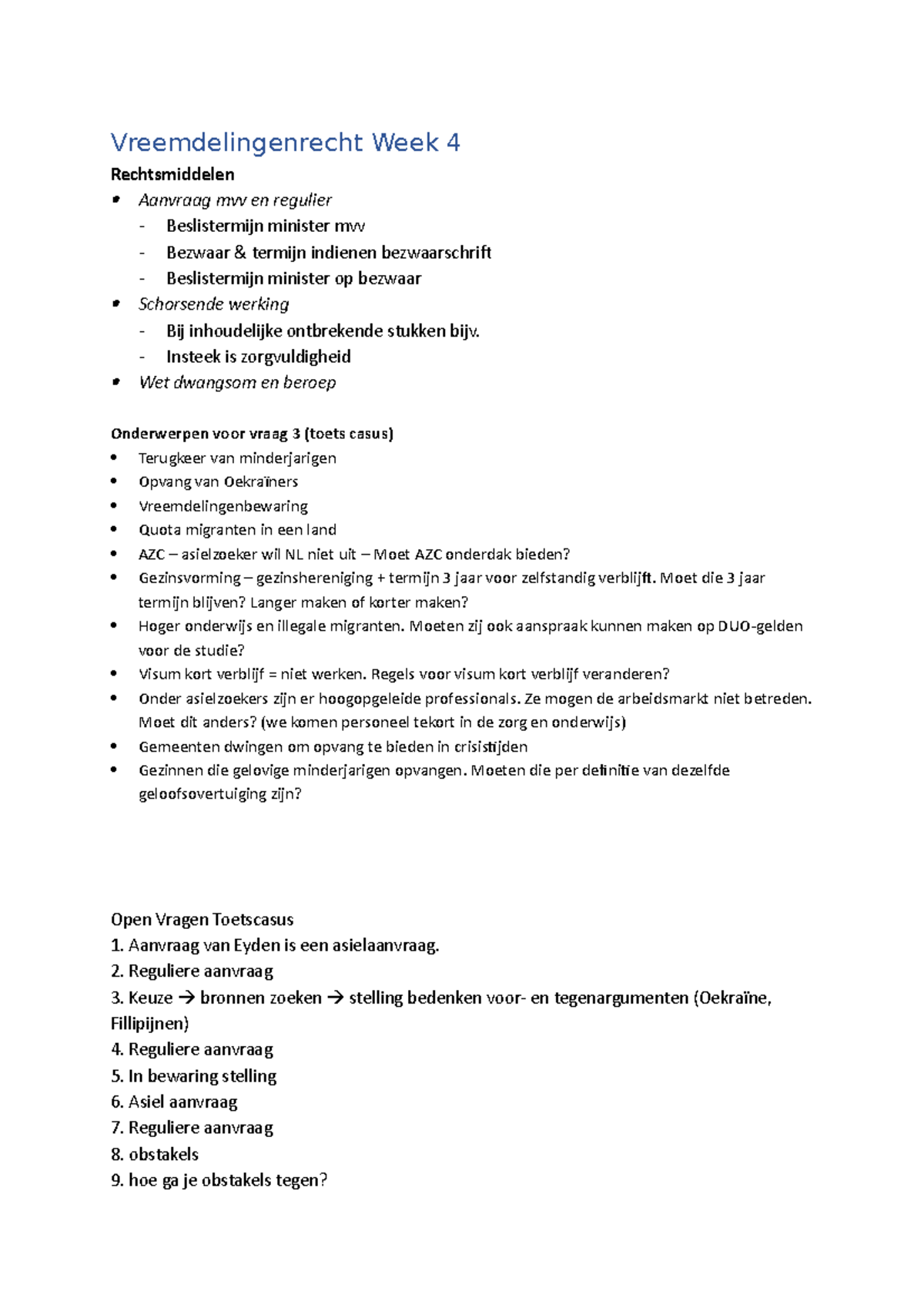 Vreemdelingenrecht Week 4 Insteek is Wet dwangsom en beroep Onderwerpen voor